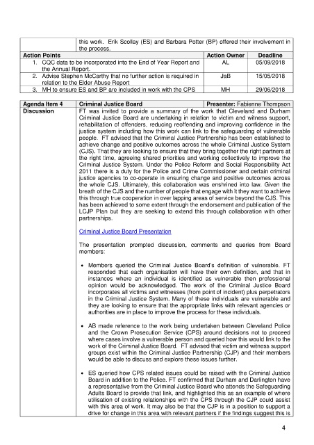 Agenda Item 4 Criminal Justice Board Presenter: Fabienne Thompson